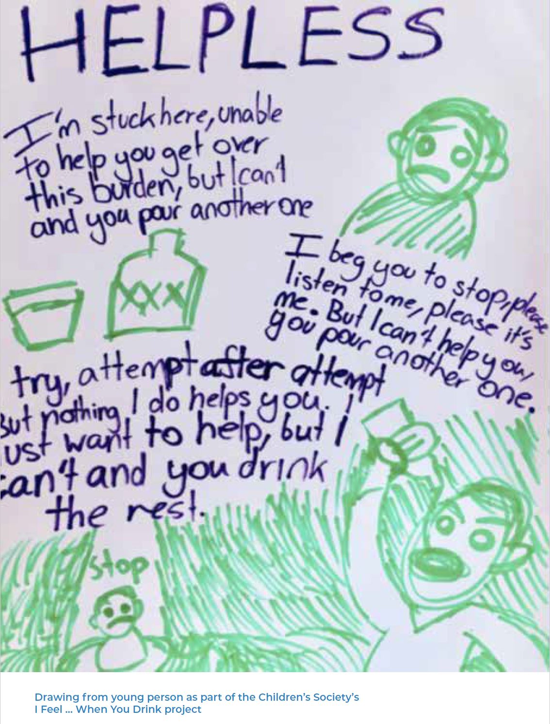 The Commission received overwhelming evidence about the harm caused to children and family life; an estimated 308,000 children currently live with at least one adult who drinks at a high risk level in England. Harmful parental drinking can be linked with neglect and abuse. 39% of children who live with a parent or carer using alcohol problematically had also had domestic violence in their household in the last five years. The impact of parental alcohol use on children can be profoundly damaging: children living with an alcohol dependent parent are five times more likely to develop eating disorders, twice as likely to develop alcohol dependence or addiction and three times as likely to consider suicide.