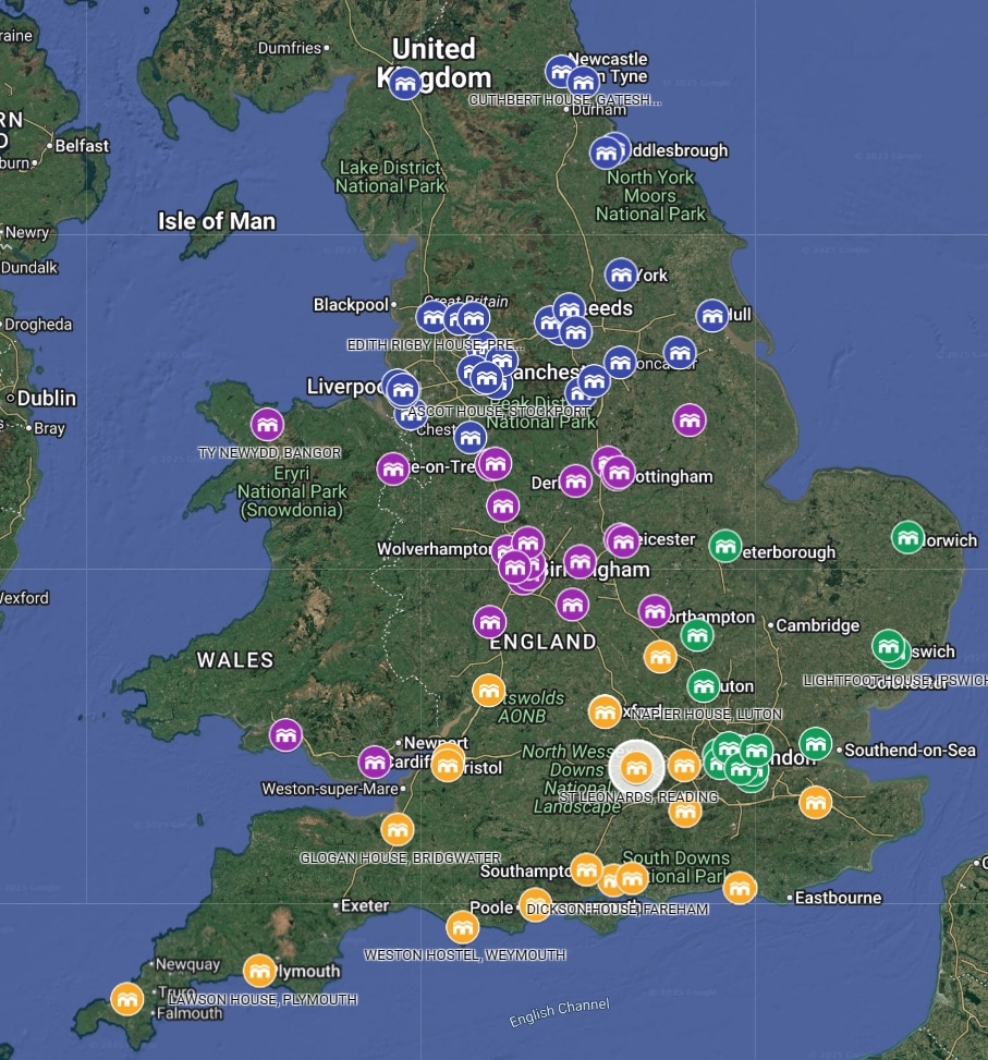 The property map (see the header image) can be found here and shows the location of every court, judges’ lodgings, probation office, approved premises, prisons and headquarters buildings in all four countries of the United Kingdom. It is a Google map so you can do all the normal things, zoom in and out, move around.