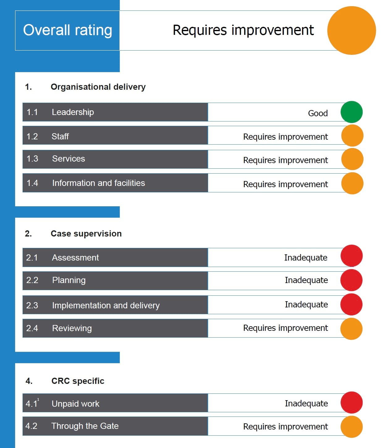 Despite these positive findings, inspectors found the overall quality of probation supervision was not nearly good enough. This is particularly disappointing; since when inspectors looked at parts of the CRC’s work in 2017, they found work was of a good standard overall and some practices were exemplary.