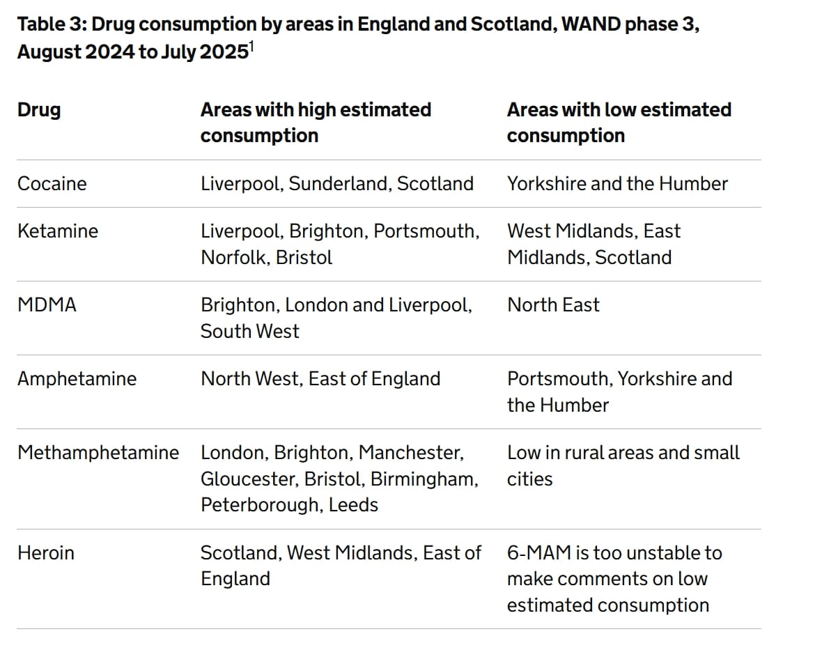 The Home Office has just (13 April 2026) published the latest findings from its Wastewater Analysis for Narcotics Detection (WAND) Programme which takes samples from wastewater treatment plants (WWTPs, or sites) across England and Scotland. WAND utilises wastewater analysis, which is a method used internationally, to provide robust and timely estimates of drug consumption in England and Scotland.