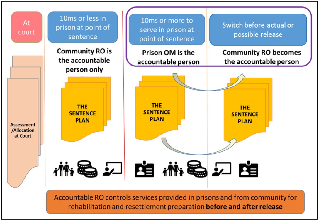 The community Responsible Officers will be required to undertake OASys assessments at the start of the pre-release stage, to support HDC and ROTL, including a pre-and-post release sentence plan, preparing a tailored resettlement pack, as well as engaging with offenders in prison throughout the pre-release stage.